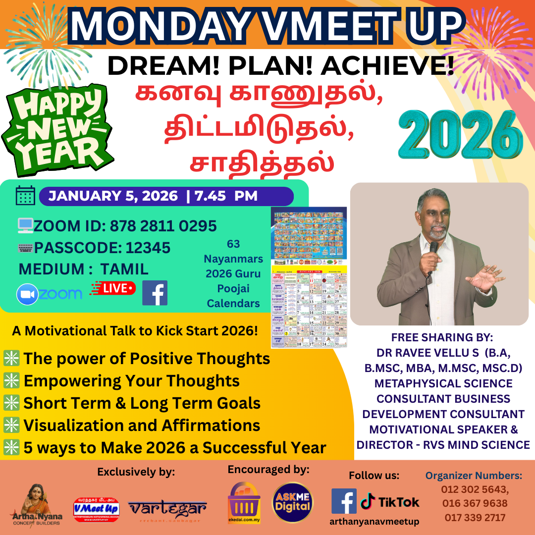 🌻🗣️ Speaker: Dr Ravee Vellu S Metaphysical Science Consultant & Motivational Speaker RVS Mind Science Singapore Sharing on Dream! Plan! Achieve!