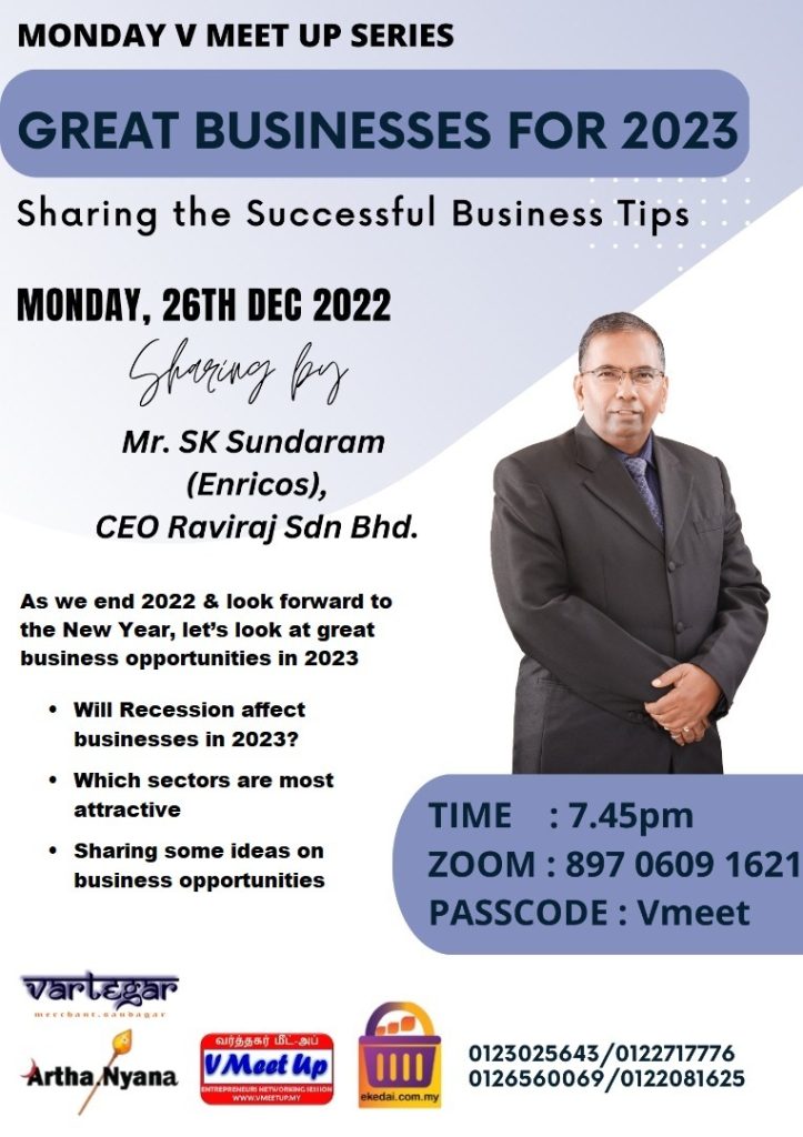 🗣️Sharing Tips by Mr. SK Sundaram (Enricos), CEO Raviraj Sdn Bhd. – A successful Entrepreneur and Philanthropist – “2023ஆம் ஆண்டில் இருக்கக்கூடிய பொருளாதார வாய்ப்புகள்!!”