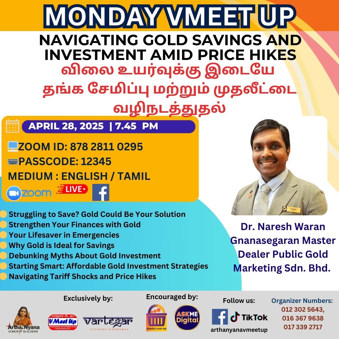 🤝Speaker Details: Dr. Naresh Waran Gnanasegaran Master Dealer Public Gold Marketing Sdn. Bhd. sharing on: 👉 Navigating Gold Savings and Investment Amid Price Hikes