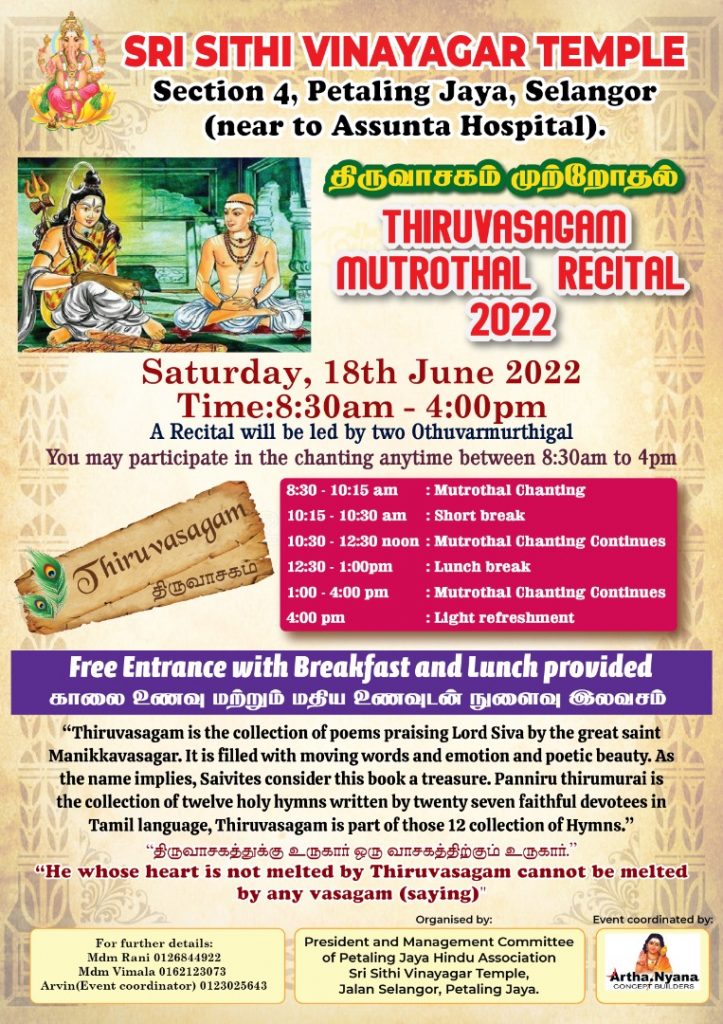 📍Venue: Sri Sithi Vinayagar Temple, Section 4, 46050 Petaling Jaya, Selangor(near to Assunta Hospital).