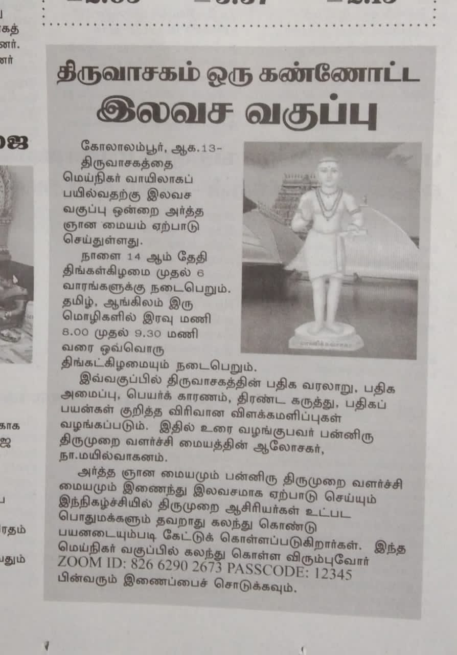 ????????THIRUVASAGAM SUMMARY WEEKLY FREE CLASS(online via Zoom)????திருவாசகம் ஓர் கண்ணோட்டம் (????இலவச வகுப்பு Zoom வாயிலாக)